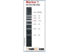 Marker 1 is ideal for determining the size of double-stranded DNA from 100 to 600 base pairs. The ladder consists of 6 linear double-stranded fragments .The 400bp fragment is present at increased intensity to allow easy identification. All fragments are precisely quantified and mixed during the production. For 5 ul loading, all fragments except 400bp are 50ng. The 400bp fragment is 125ng. This ladder is pre-mixed with loading dye and is ready to use.