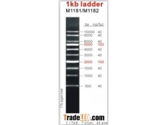 1kb ladder is suitable for sizing linear double-stranded DNA fragments from 500 bp-10 kb, and composed of ten chromatography-purified individual DNA fragments. All bands (except 2kb and 5kb) are supplied at approximately 40 ng/5µl. The 2kb and 5kb bands are 100ng. This ladder is pre-mixed with loading dye and is ready to use.